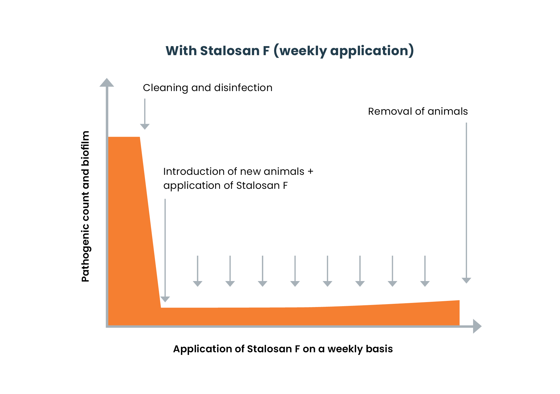 Stalosan F can be used to treat existing problems, however real cost benefit comes from using it as a preventative.